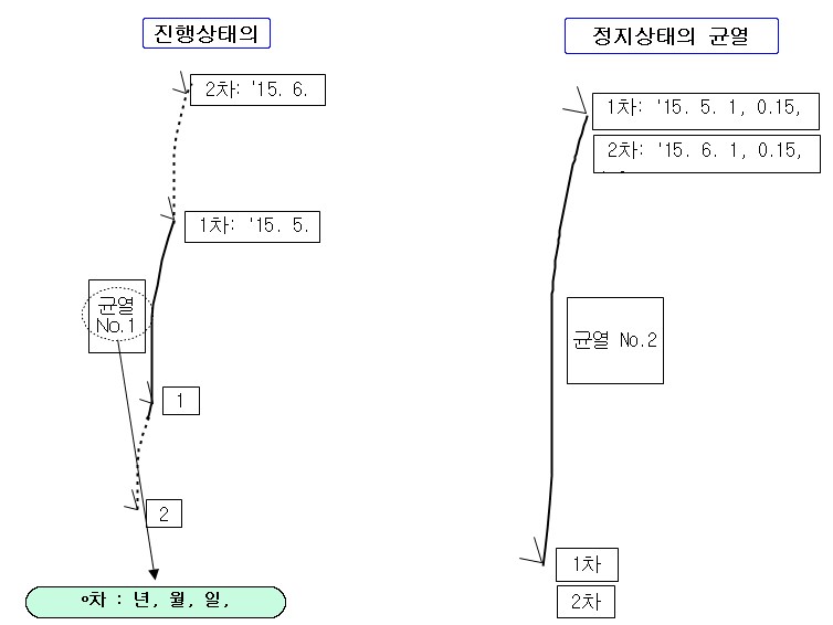 2) 최초 균열 발생시부터 준공시까지 발전상황 기록 유지