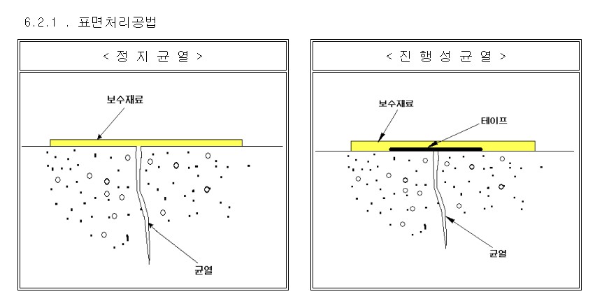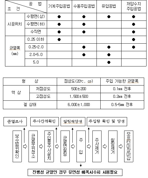 - 균열의 진행성에 적응할 수 있도록 가소성 에폭시재료 사용 고려